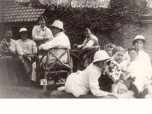 Vlnr: Tijna Hoogstraaten, Jannie van Schaik, Truus van der Tang, zus van Dik, Ali van der Bent, zus van Karel, onbekend, Gré de Bruin, Martha Verbree en Dinie van Beusekom.