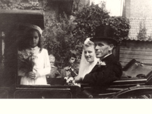 Op de bok: Piet van Rijn, verhuisde later naar Drente. Rechts Nel Groeneveld-van Rijn.
