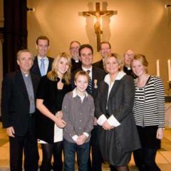 John Bakker met zijn vrouw José en hun kinderen Charlotte, Pieter en Emilie. Verder Mgr. A.H. van Luyn s.d.b., burgemeester Sander Schelberg en Commissaris van de Koninigin Jan Fransen. (Foto: Peter van Mulken)