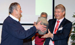 Voor aanvang van de jaarvergadering op woensdag 16 maart 2011 werden het HKV-bestuur en de leden overvallen door wethouder Karin Lambregts en de pers. De wethouder verraste de aanwezigen met de vondst van de urn en onderstaande tekst. Na teruggave aan Van der Hulst, werd de urn direct aan HKV-voorzitter Frans van der Geer geschonken. Foto’s: Mariska de Graaff, Voorhout.