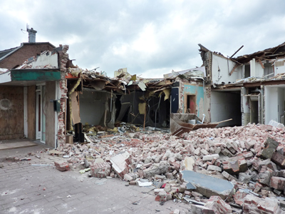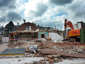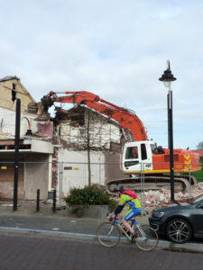 Voorhout, laatste week maart, eerste week april 2018 – De sloop van de panden aan de Herenstraat 110-116 is begonen. De ruim een eeuw oude panden moeten plaats maken voor de bouw van een appartementencomplex, genaamd De Posterijen.