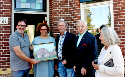 Tenslotte werd door de ambachtsheer Kim Coster van Voorhout en de voorzitter van de HKV, Cok van Steijn, een schilderij van het gerenoveerde pand, geschilderd door Janneke Zandbergen, overhandigd aan Stan en Marjolein Uljee.