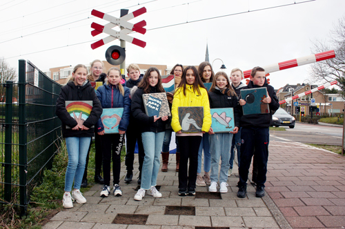 Besloten is om de kunstproducties alsnog te laten zien. Vanaf maandag 12 april zijn de eerste schilderstukken te zien. Nabij de spoorwegovergang zijn, in aanwezigheid van wethouder Arno van Kempen, beschilderde stoeptegels in het trottoir geplaatst. De tegels zijn beschilderd met begeleiding van Sonja van Egmond. Bij het plaatsen waren de jonge kunstenaars, die vorig jaar in groep zeven van de Antoniusschool zaten en nu veelal deel uitmaken van groep acht van de Avonturier, aanwezig. Zowel aan de kant van Jacoba van Beierenweg als aan die van de Herenstraat zijn deze beschilderde tegels gelegd. Deze tweedeling onderstreept tevens de symboliek van de overgang van oorlog en bezetting naar vrijheid en democratie. De verwachting is dat veel wandelaars zich bij het zien van de tegels zullen realiseren dat de vrijheid doorgegeven moet te worden. En vooral ook dat vrijheid niet vrijblijvend of vanzelfsprekend is.