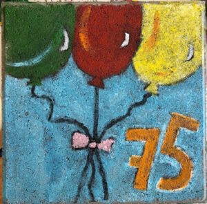 Besloten is om de kunstproducties alsnog te laten zien. Vanaf maandag 12 april zijn de eerste schilderstukken te zien. Nabij de spoorwegovergang zijn, in aanwezigheid van wethouder Arno van Kempen, beschilderde stoeptegels in het trottoir geplaatst. De tegels zijn beschilderd met begeleiding van Sonja van Egmond. Bij het plaatsen waren de jonge kunstenaars, die vorig jaar in groep zeven van de Antoniusschool zaten en nu veelal deel uitmaken van groep acht van de Avonturier, aanwezig. Zowel aan de kant van Jacoba van Beierenweg als aan die van de Herenstraat zijn deze beschilderde tegels gelegd. Deze tweedeling onderstreept tevens de symboliek van de overgang van oorlog en bezetting naar vrijheid en democratie. De verwachting is dat veel wandelaars zich bij het zien van de tegels zullen realiseren dat de vrijheid doorgegeven moet te worden. En vooral ook dat vrijheid niet vrijblijvend of vanzelfsprekend is.