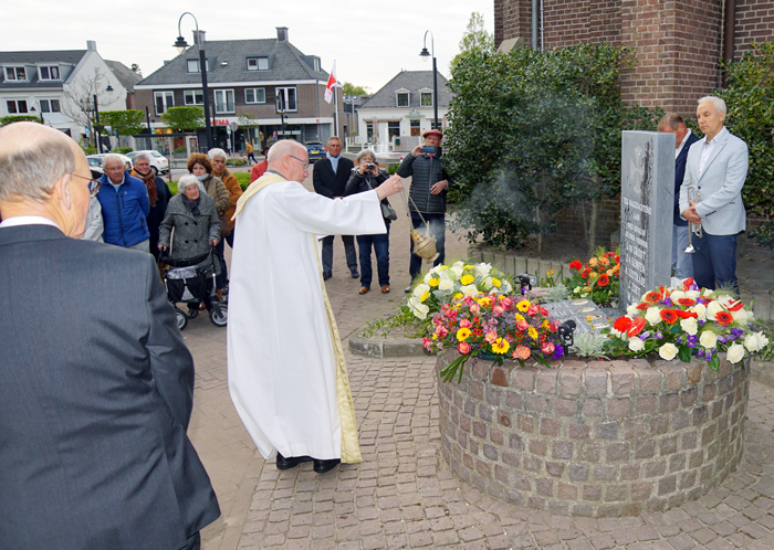Na een korte bijeenkomst in De Roef ging het gezelschap naar het monument waar burgemeester Carla Breuer met HKV-voorzitter Cok van Steijn de onthulling verrichtten door de vlag die het geheel afdekte te verwijderen. Daarop sprak pastoor Theo Blokland een gebed uit en zegende de gedenkplaats. Na het blazen van het taptoesignaal door Jos Hoek en een minuut stilte is het Wilhelmus gespeeld en gezongen, waarna door de burgemeester en namens de OVV, de Parochie en de HKV bloemen werden gelegd.