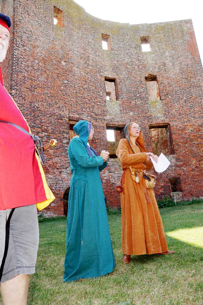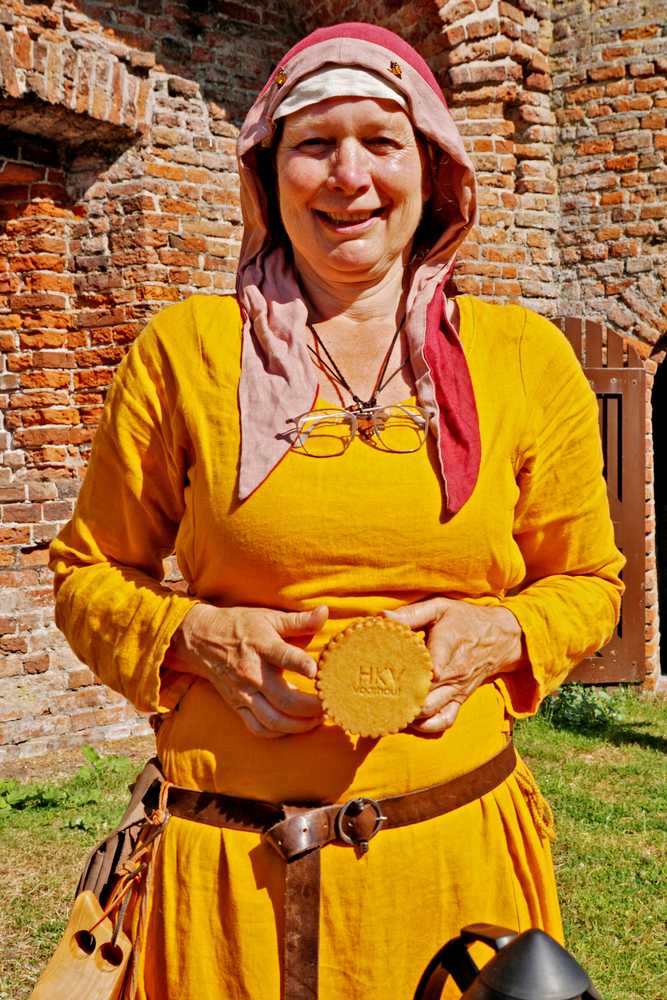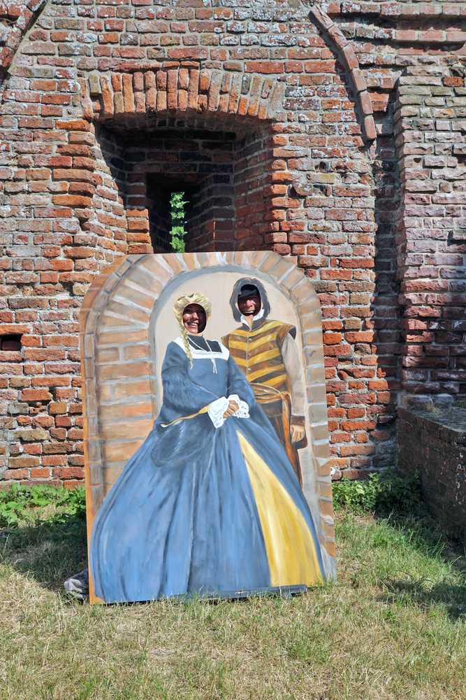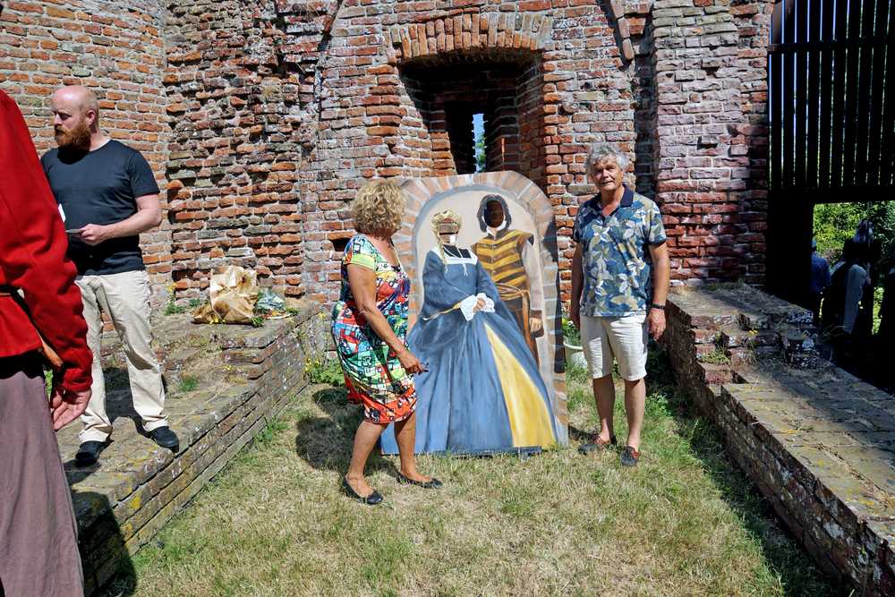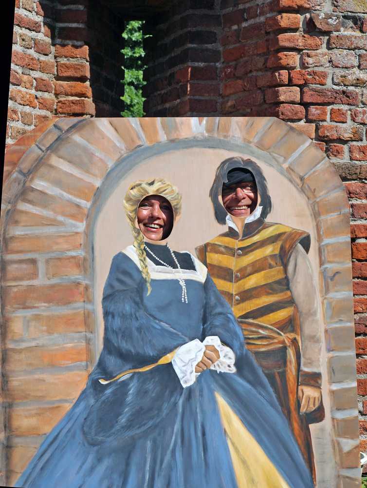 Het schildje van de HKV werd overhandigd aan Ger Copier, vertegenwoordiger van de SMB. Copier was trots dat deze prijs aan de Ruïne van Teylingen werd uitgereikt. Daarna werd de wethouder uitgenodigd om samen met Gerard Rutgrink, voorzitter van de SBKT, het cadeau van de HKV aan de ruïne te onthullen. Esther Kortekaas had een prachtig tableau gemaakt met de beeltenis van Jacoba van Beieren en van Frank van Borselen echter zonder gezicht. Door achter het tableau te gaan staan en het gezicht door het gat te steken vereeuwigen de bezoekers zich als bewoner van dit Slot. Het cadeau werd enthousiast ontvangen door het publiek en door Rutgerink.
