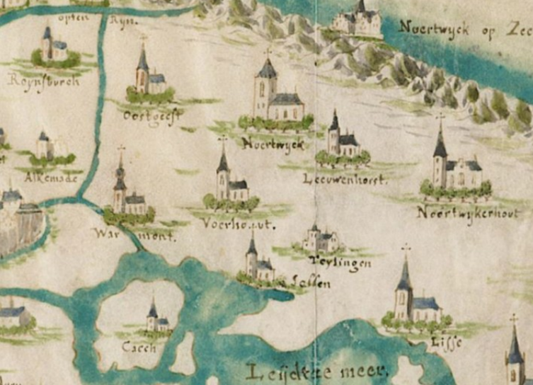 Kaart van het zuidelijk deel van Zuid-Holland uit 1565 (18de-eeuwse kopie) gemaakt door Jaques Bureau (Tekenaar). Erfgoed Leiden en Omstreken