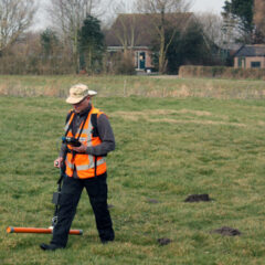 Geofysisch onderzoek in de Boekhorstpolder (Foto: HKV, Kees den Elzen) Bij de eerste meldingen van de plannen voor de wijk Nieuw Boekhorst heeft de Historische Kring Voorhout al gevraagd om ruim de tijd te nemen voor archeologisch onderzoek in het Lees meer